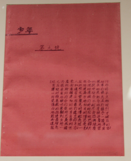 1922年8月,旅欧少共创办了机关刊物《少年》杂志。该刊以理论宣传为主。据亲历者蔡畅回忆:“《少年》刊物是轮流编辑,邓小平、李大章同志刻蜡版,李富春同志发行。有时是三日刊、二日刊、月刊,时间不定。邓小平、李富春同志是白天做工,晚上搞党的工作,而周恩来同志则全部脱产。”