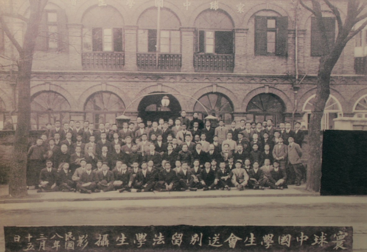 他们都是寰球中国学生会的成员。大家刚刚结束了欢送会。很快,八十多名青年即将踏上赴法留学之路。众人依依惜别,在楼外照了一张大合影。