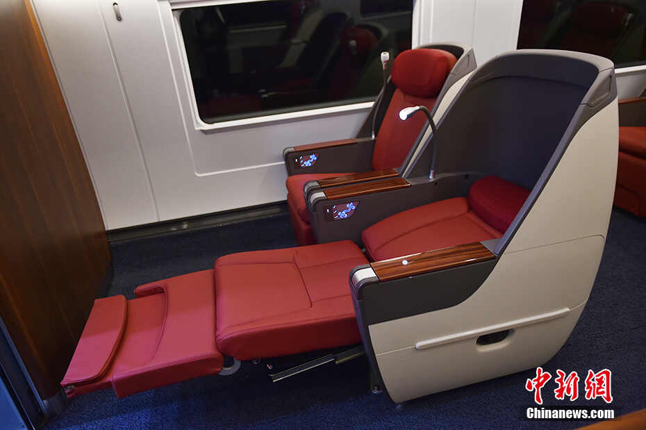 据介绍,长编组“复兴号”动车组列车,型号为CR400BF-A型,编组16辆,采用“8动8拖”动力设计,设有商务、一等和二等座席,列车总长度达到414.26米,总定员达1193人,成为全球编组最长的时速350公里的动车组列车。中新网记者 翟璐 摄