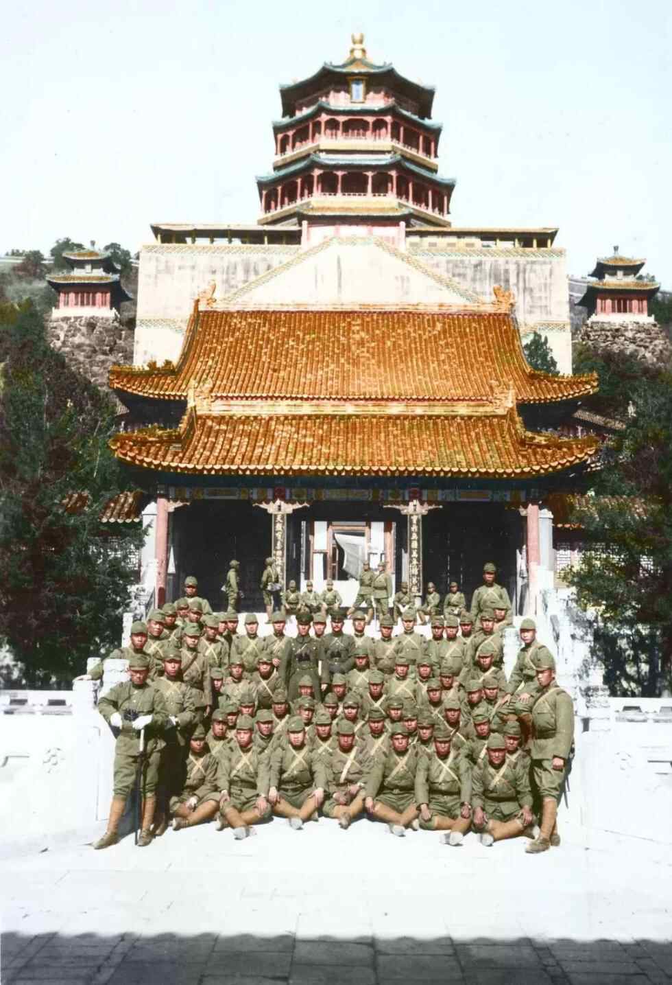 日军在北平颐和园佛香阁留影(数字彩色复原技术)