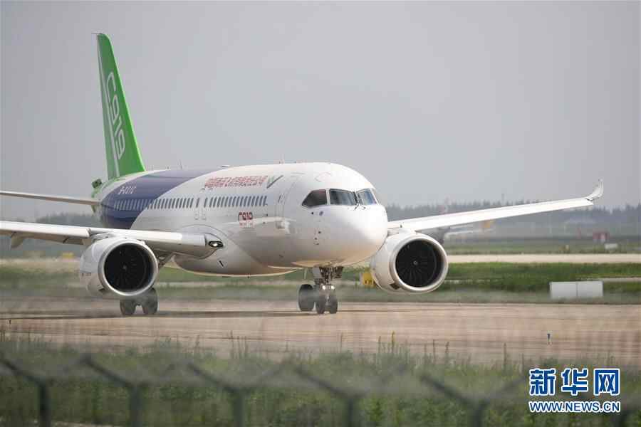 7月12日,在上海浦东机场,C919大型客机在跑道上滑行。当日,C919大型客机102架机从上海浦东机场起飞,历经1小时46分的飞行,平稳降落在山东东营胜利机场,顺利完成首次空中远距离转场飞行。这意味着C919大型客机项目进入密集研发试飞新阶段,正式开启多地同步试飞模式,未来将接受各种复杂气象条件的考验和系列高风险试飞科目的挑战。此次转场东营试飞基地的102架机主要承担动力装置、电源系统、环控系统等地面试验验证和试飞科目。新华社记者 丁汀 摄