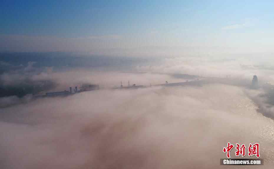 “万里长江第一坝”葛洲坝在雾气笼罩下更显得壮阔唯美。周星亮 摄