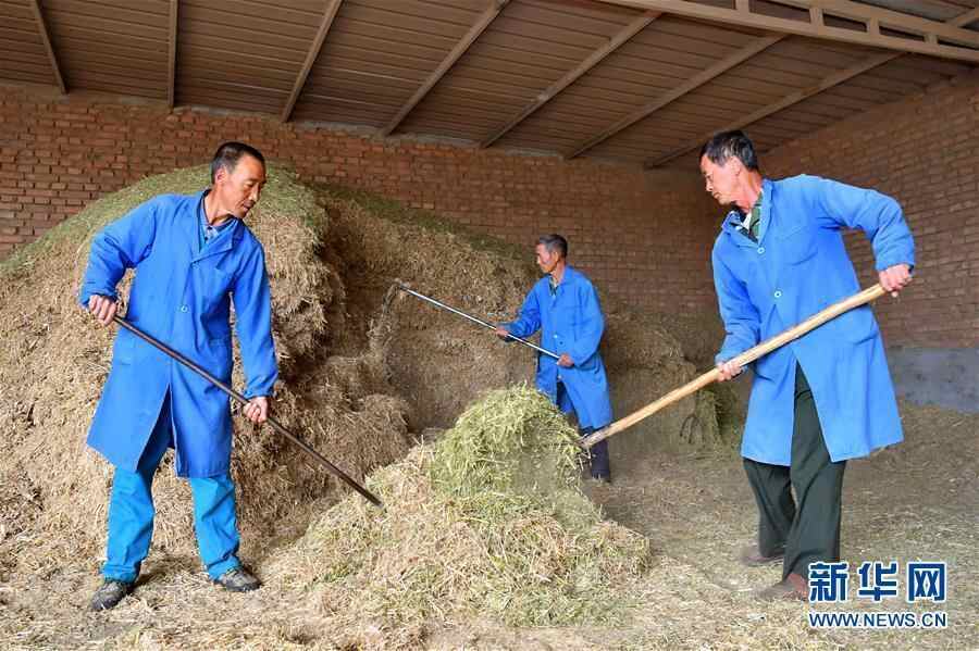 山西阳曲县杨兴乡坪里村村民刘学荣(左)和工友们为羊驼准备草料(7月10日摄)。新华社记者 曹阳 摄 图片来源:新华网