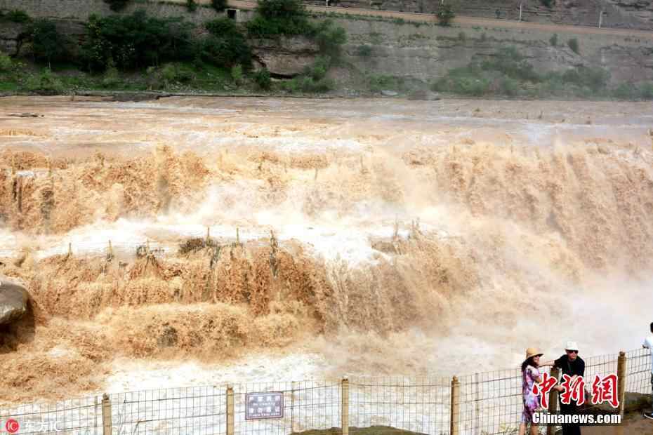 面对其实磅礴的壶口瀑布,前来一堵壮丽景象的游客显得很“渺小”。图片来源:东方IC