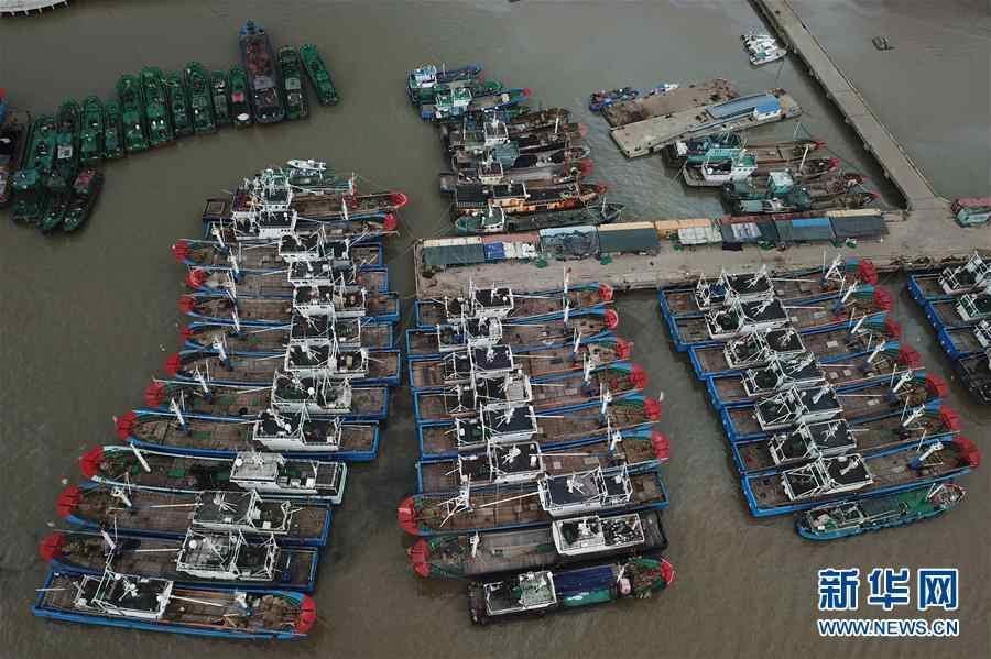 7月21日,在浙江省舟山市沈家门渔港,大批渔船已回港避风(无人机拍摄)。 当日,随着今年第10号台风“安比”逼近浙江舟山,舟山市防指将防台风应急响应提升为Ⅱ级,大批渔船在港避风。 新华社记者 黄宗治 摄