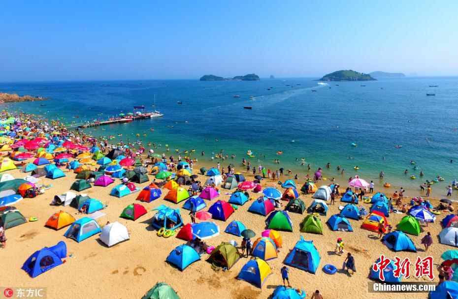 2018年7月22日,约4万游客聚集到大连市付家庄海滨浴场消暑避夏整个海滩如同“下饺子”。当日大连天气晴好,又恰逢周末,而且该海滨浴场是距离市区最近的免费海水浴场,约4万人云集到付家庄海滨浴场在海滩上支起花花绿绿的帐篷,到大海里畅游,整个海滩如同“下饺子”般热闹。图片来源:东方IC 版权作品 请勿转载
