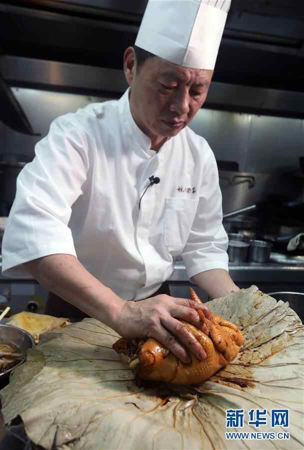 杭州酒家老板吴瑞康现场制作本店招牌菜“叫化鸡”(6月16日摄)。