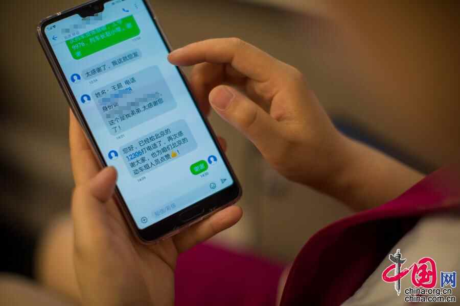 赵小琴认为作为一名列车长,除了在车上为乘客做好服务外,还将自己的服务延伸到车厢之外,从进站开始就努力让乘客感受到温暖。在她的手机上经常可以收到那些被她照顾过的重点旅客发来的求助信息和感谢短信。中国网 郑亮 摄