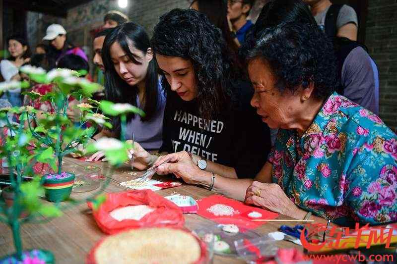 金羊网讯 记者邓勃摄影报道:8月2日下午,AIESEC(国际经济学商学学生联合会)"探索中国"项目的国际志愿者们走进中国乞巧之乡---广州天河珠村,亲身体验中国乞巧文化,了解中国传统文化的前世今生。来自埃及、摩洛哥、马来西亚等国家的20余名国际志愿者将走进珠村祠堂,领略古村落风情,并向乞巧婆婆们学习传统乞巧手工艺。