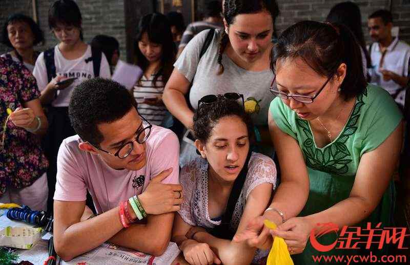 金羊网讯 记者邓勃摄影报道:8月2日下午,AIESEC(国际经济学商学学生联合会)"探索中国"项目的国际志愿者们走进中国乞巧之乡---广州天河珠村,亲身体验中国乞巧文化,了解中国传统文化的前世今生。来自埃及、摩洛哥、马来西亚等国家的20余名国际志愿者将走进珠村祠堂,领略古村落风情,并向乞巧婆婆们学习传统乞巧手工艺。
