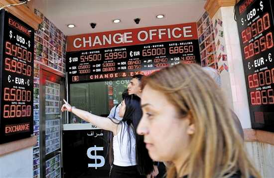 当地时间10日下午,6.04里拉兑换1美元,图为土耳其伊斯坦布尔一外汇交易所 图/视觉中国