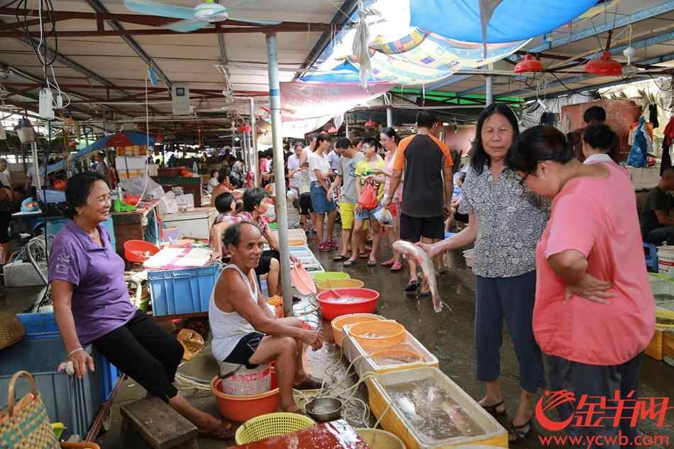 一对老渔民在新湾旧渔港市场卖鱼,很多老主顾常年帮衬