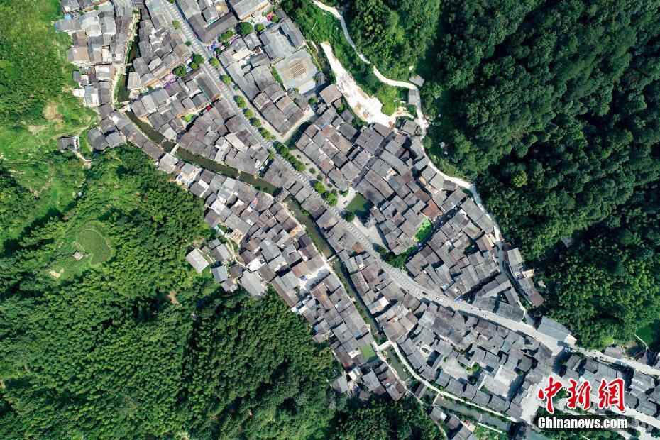 8月22日,航拍青山环抱中的贵州肇兴侗寨。肇兴侗寨,位于贵州省黔东南苗族侗族自治州黎平县东南部,距今有840多年历史,占地18万平方米,居民1000余户,是中国最大的侗族村寨之一,素有"侗乡第一寨"之美誉。肇兴侗寨是国家4A级旅游景区和首批中国少数民族特色村寨,中国首批民族民间文化保护试点单位。2012年,贵州肇兴侗寨入选第一批中国传统村落保护名录。中新社记者 贺俊怡 摄