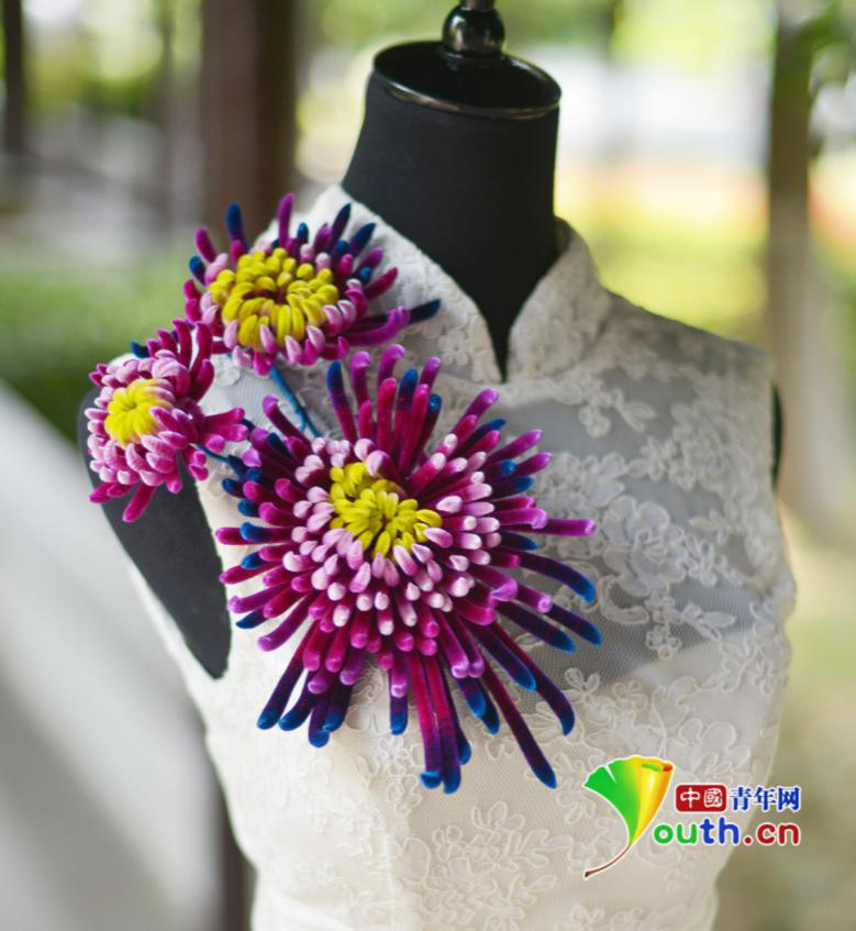 “一些传统的绒花样式,与现代时尚有些脱节,像这样的我就会做成小装饰品、摆件等,也很受大家欢迎。”赵树宪说。