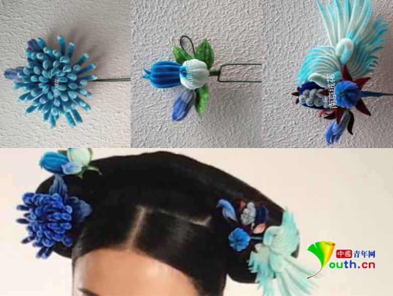 赵树宪为《延禧攻略》剧中人物制作的绒花头饰。本人供图