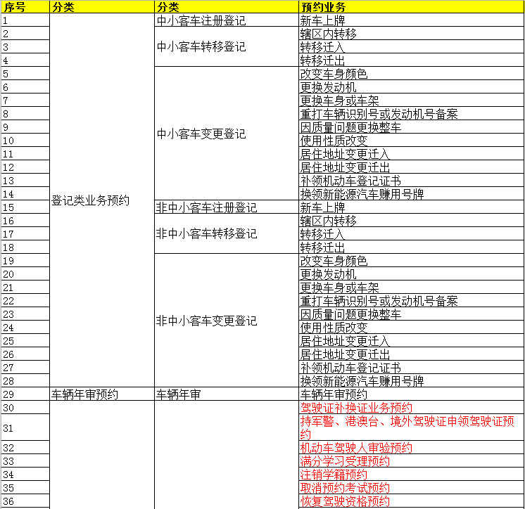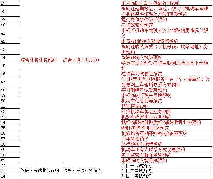 车管综合业务是指除机动车年审、机动车登记、驾驶人考试业务以外的车管业务统称,如驾驶证补换证、审验学习等(详见附件中标红部分)。