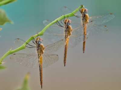 金羊网讯 记者陈秋明摄影报道:广州连日大雨,今日(8月30日)更是天色阴沉,大雨不停,从早上开始,雨几乎没停过,就连天空飞翔的蜻蜓也抵挡不住雨水,湿漉漉地“排队”倒挂在花枝,躲雨休息,画面有趣。