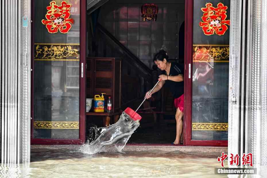 9月3日,广东汕头市瓦窑村,市民清理家中积水。当日,广东汕头市潮南区天气转好,内涝地区积水水位逐渐下降。中新社记者 陈骥旻 摄