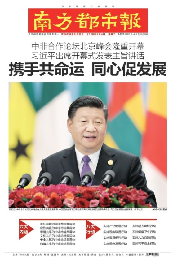 中非合作论坛北京峰会隆重开幕。习近平出席开幕式并发表主旨讲话,强调携手打造新时代更加紧密的中非命运共同体,重点实施好产业促进、设施联通、贸易便利、绿色发展、能力建设、健康卫生、人文交流、和平安全“八大行动”。