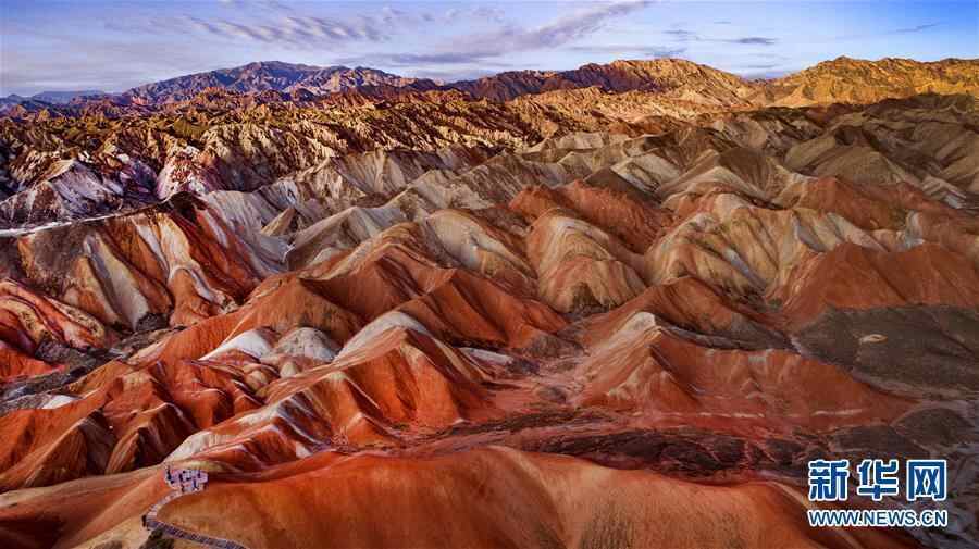 位于祁连山北麓的甘肃张掖丹霞国家地质公园内的丹霞地貌,以层级错落交替、气势磅礴、形态丰富、色彩斑澜而称奇,游客置身其中犹如进入画境。新华社记者 陶明 摄 图片来源:新华网