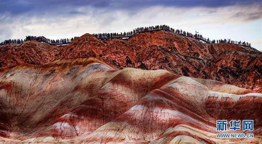 9月6日,游人在张掖丹霞国家地质公园游览(无人机拍摄)。新华社记者 陶明 摄 图片来源:新华网