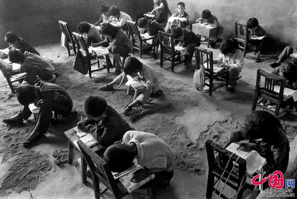 1991年5月,山东省平邑县西点村小学,村民们集资翻盖了教室,但再也无力为孩子们购置课桌了。