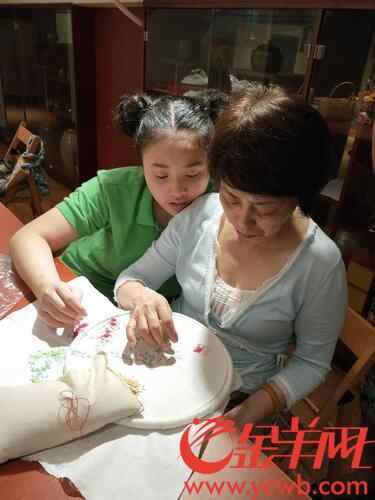 有一次,伦女士看到孩子很信任地将脸蛋挨在陈泽瑶的肩膀学刺绣,她很感动。一年后,诗雅从不会刺绣,到有了自己的作品,在前不久的广州市青少年工艺美术大赛上,诗雅的一幅作品获得银奖,“作为一个自闭症孩子,非常不容易。”伦女士说,孩子在家里也常常沉浸在刺绣的世界,“心型”花纹已经绣了100多个,到了饭点,诗雅甚至会说:“不吃,绣完再吃。”
