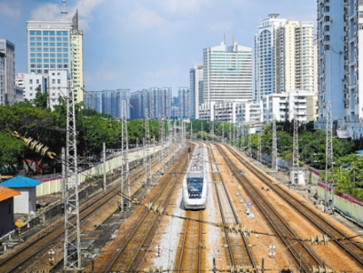 广深铁路是连接广州、深圳和香港的重要通道,1911年建成通车,原名广九铁路华段。1979年,首趟港穗直通车在广州火车站开出。2007年“和谐号”动车开始在广深线进行载客试运行,随后中国铁路第六次大提速,“和谐号”动车组在广深铁路大规模上线运行。目前广深铁路列车运行班次达到每10~15分钟一趟,客流高峰期时达到每5分钟一趟,初步实现了“公交化”营运。广深铁路是我国密度最大的城际交通线路,被称为中国高速铁路发展的“试验田”,对于推动广州、深圳两个超大城市的经济社会发展,推动粤港两地经济人文交流合作发展具有十分重要的意义。