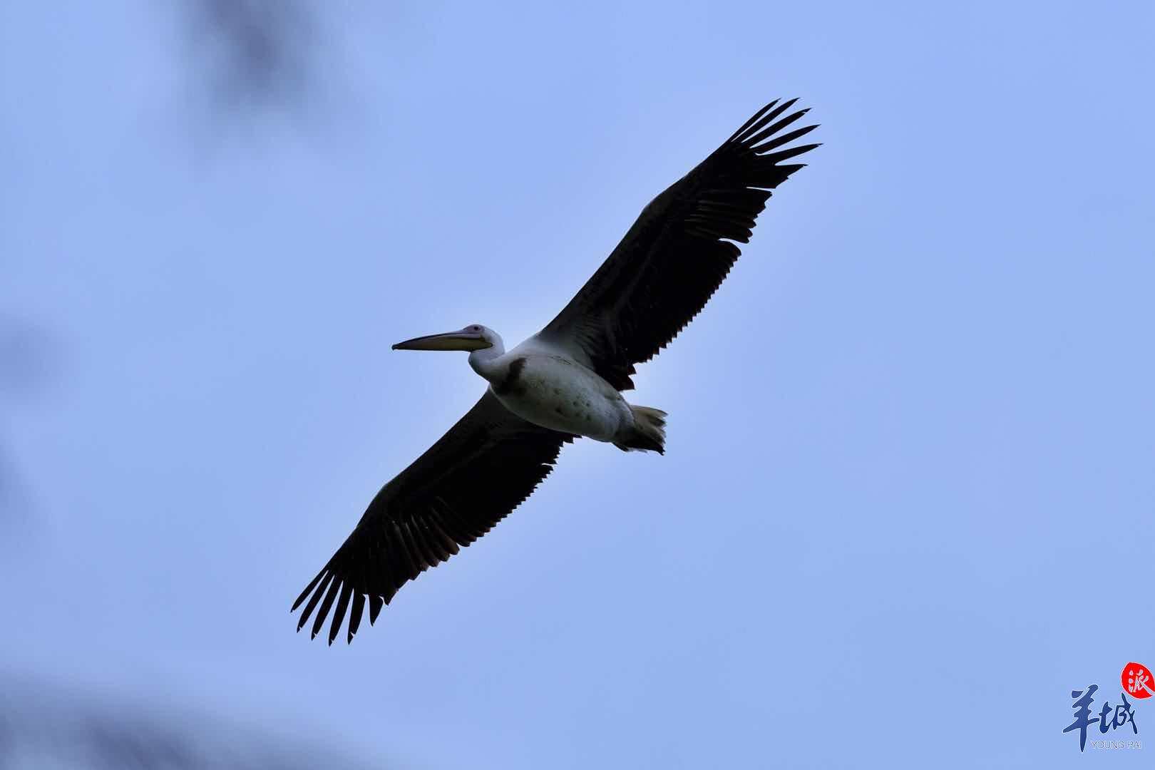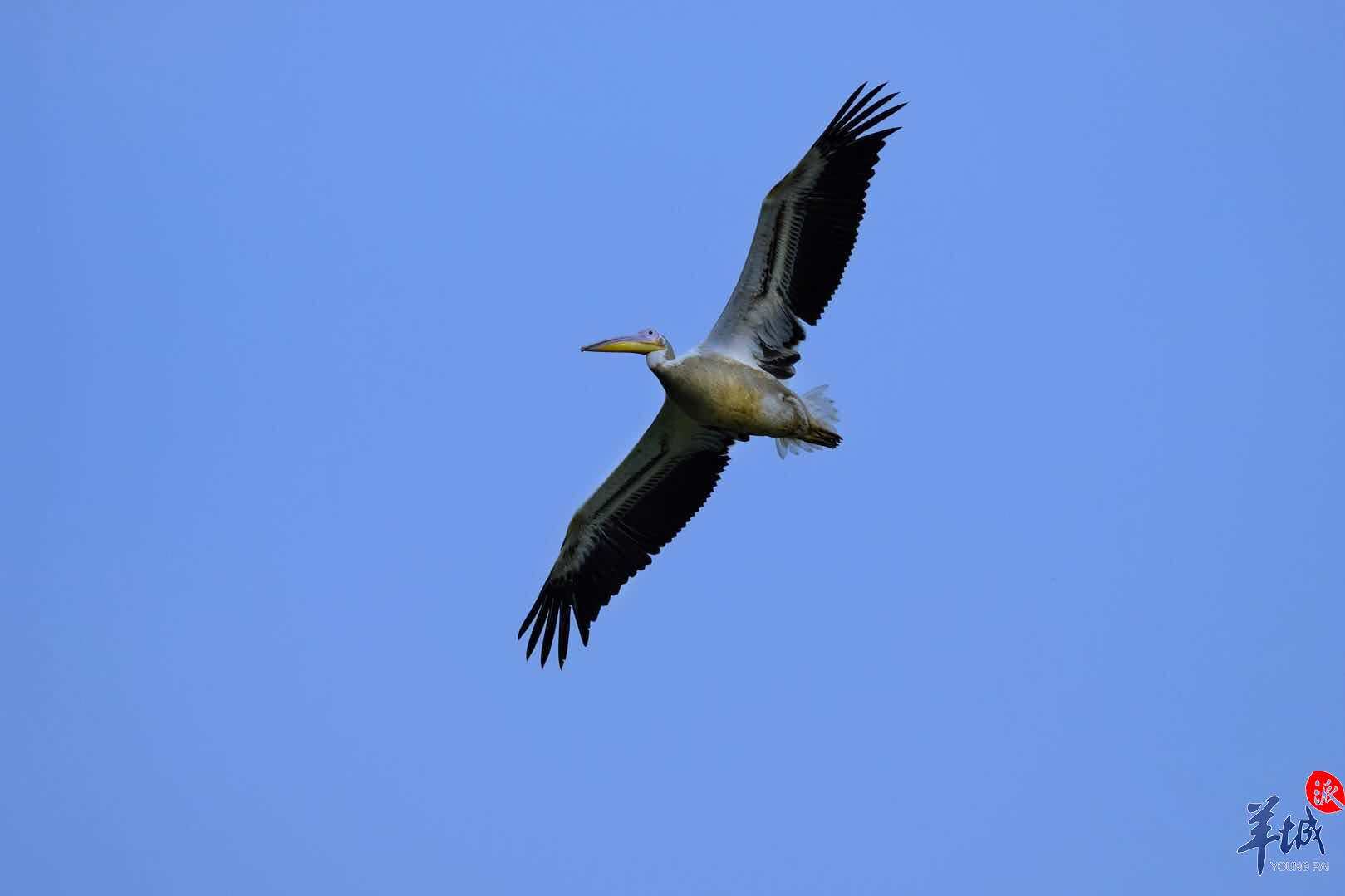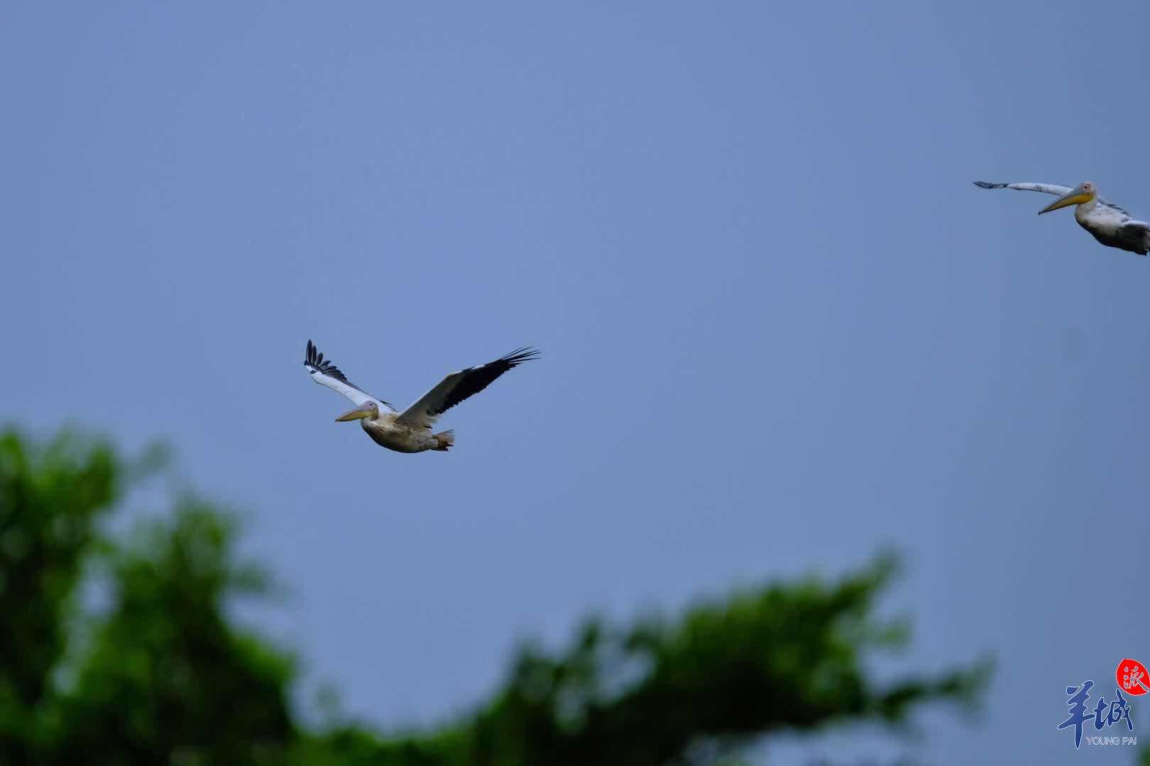 秋天童话,广州南沙鹈鹕、白鹤编队飞