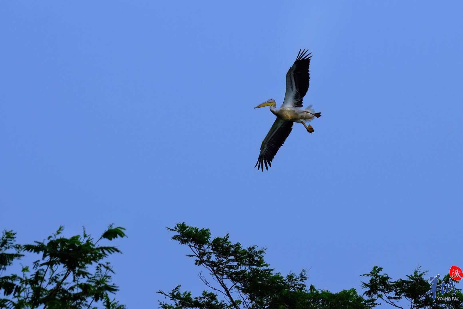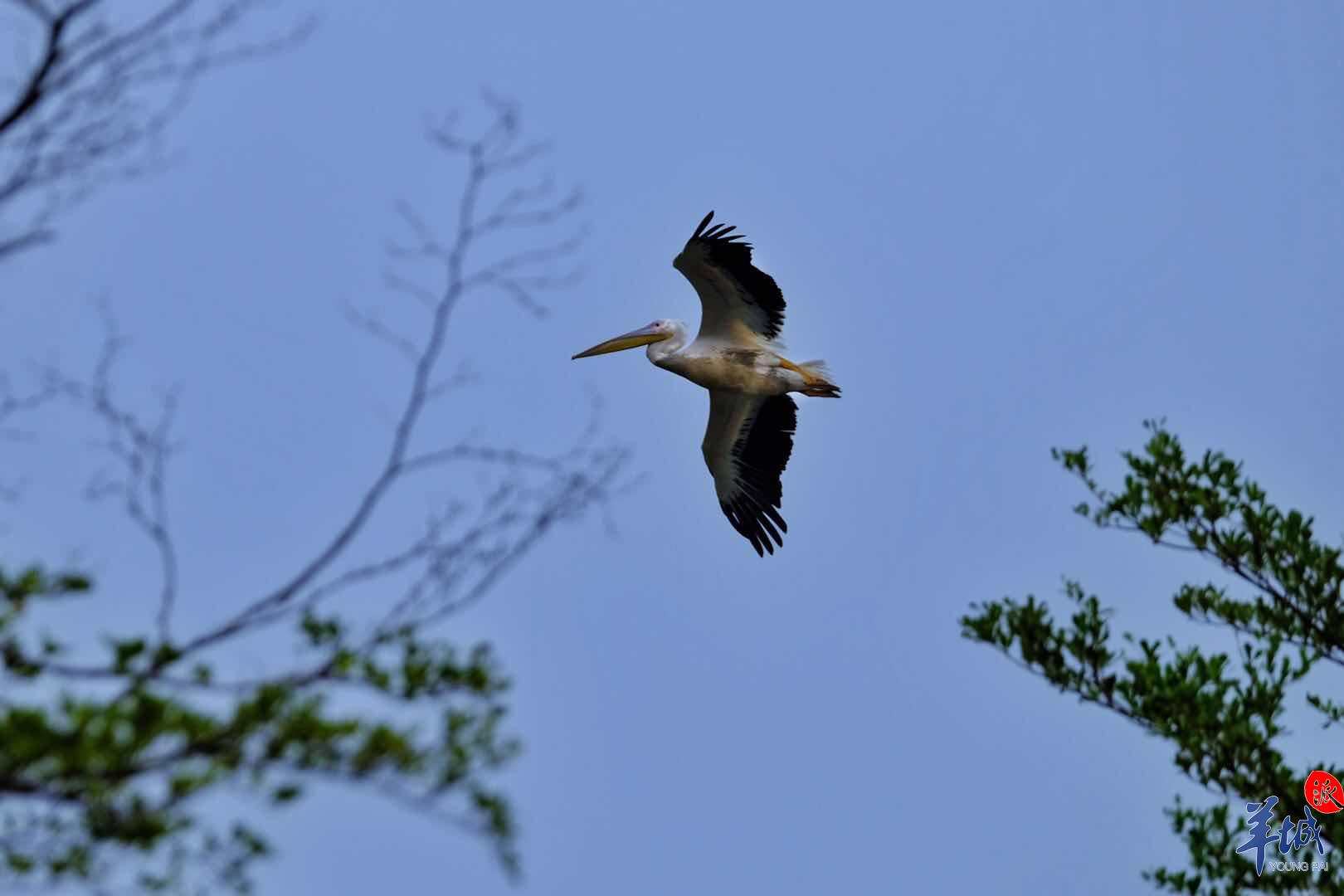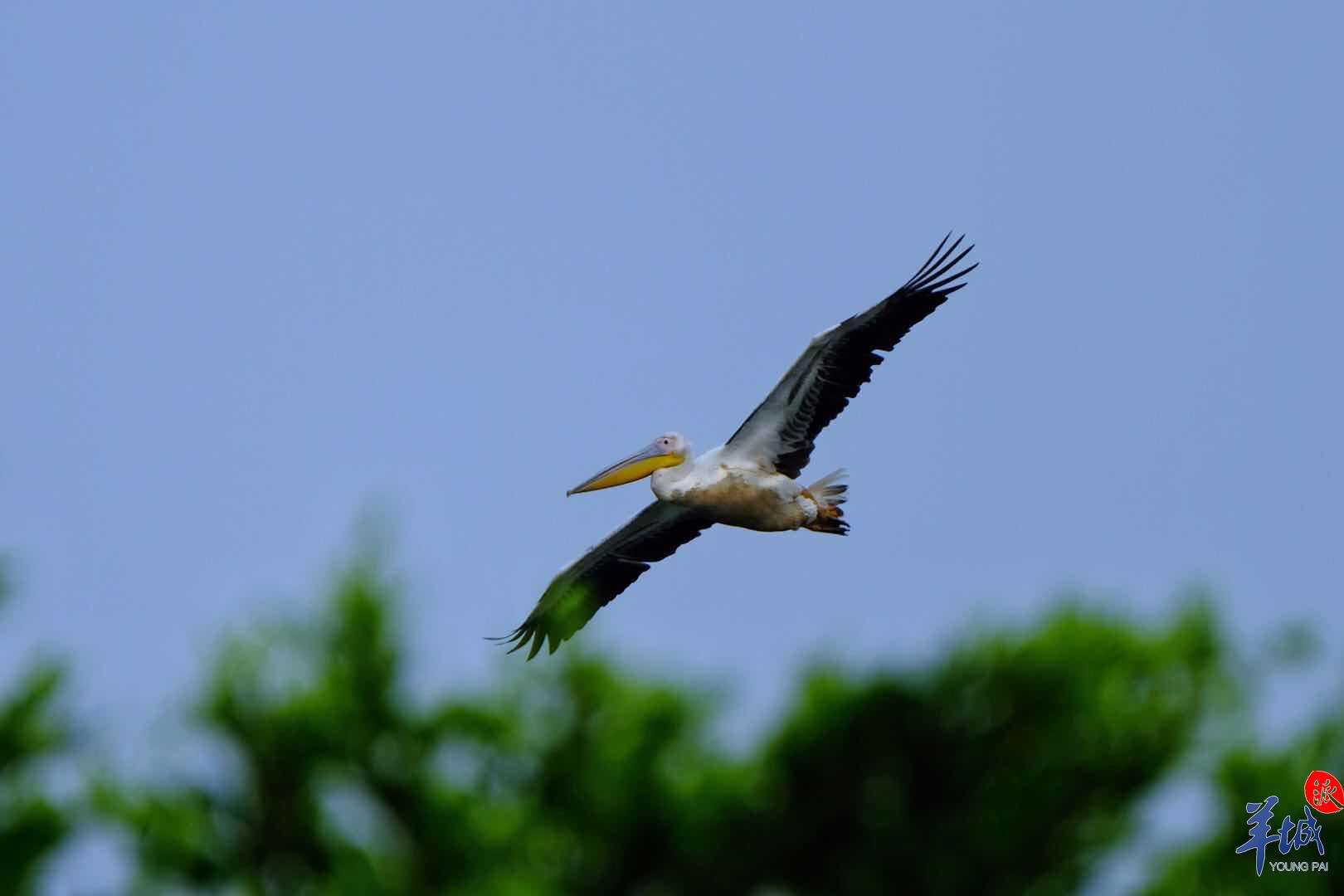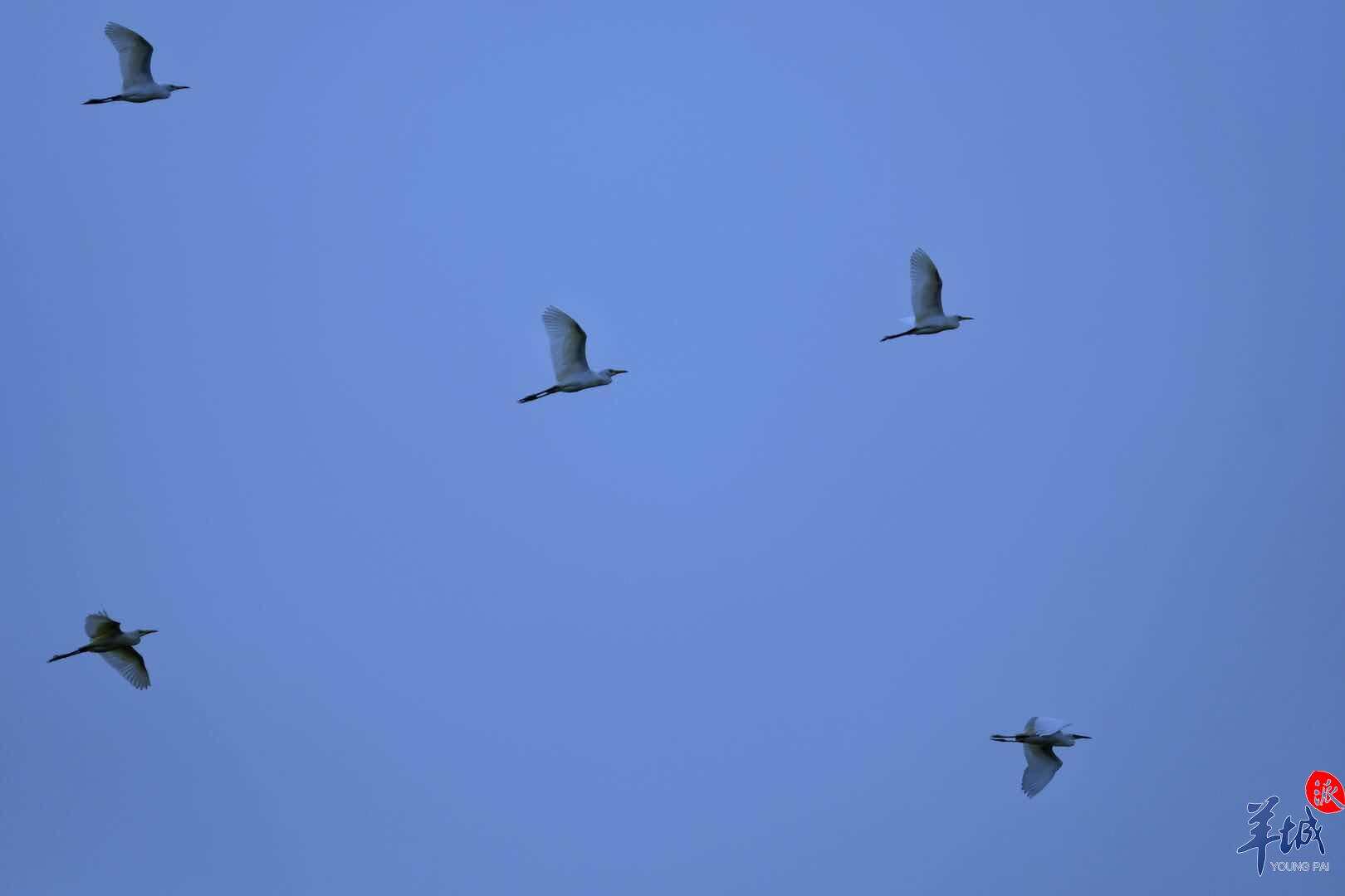 秋天童话,广州南沙鹈鹕、白鹤编队飞