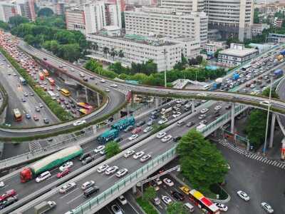 2018年9月30日,国庆前夕,广州交通路况渐渐繁忙。图为下午18时许,华南快速黄埔大道入口处,车流渐多。记者 周巍 摄