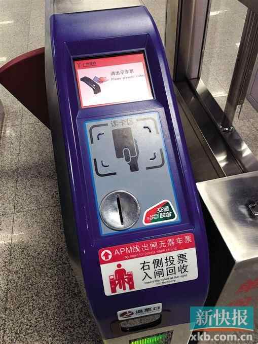 ■广州地铁部分闸机上贴有“交通联合”字样的标志,乘客可使用全国交通一卡通通过这些闸机。 新快报记者 许力夫/摄