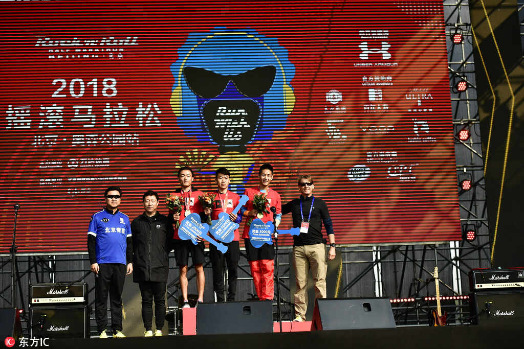 2018摇滚马拉松北京站半程马拉松男子组前三名颁奖