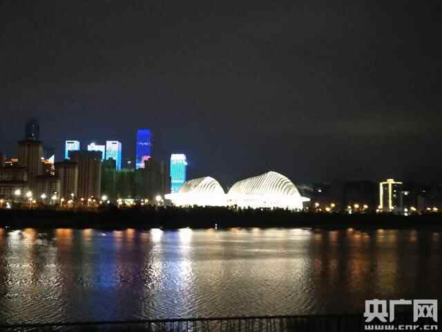夜景中的广西文化艺术中心。 (央广网记者王笑蕾摄)