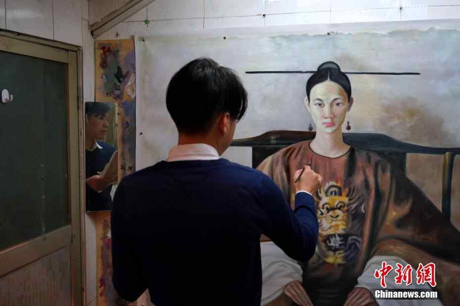 来自福建宁德的卢祖发今年26岁,他从小喜好美术,6年前来到大芬村,从学徒做起,夜以继日地作画,凭借自己的勤奋和美术功底,现在终于有了自己的工作室。他说,临摹名画是为了挣钱,但只有原创才有前途。中新社记者 张炜 摄