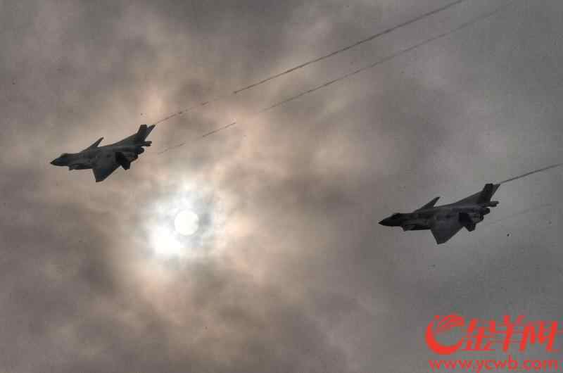 2018年11月3日下午3时许,三架歼20突然出现在珠海机场上空,进行约十分钟的飞行展示。记者 黄巍俊 摄