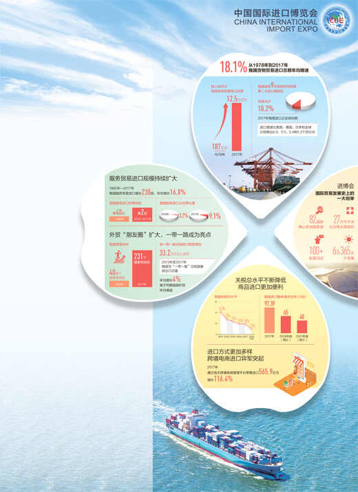改革开放40年来,我国进口总额从187亿元提高到12.5万亿元,年均增速为18.1%