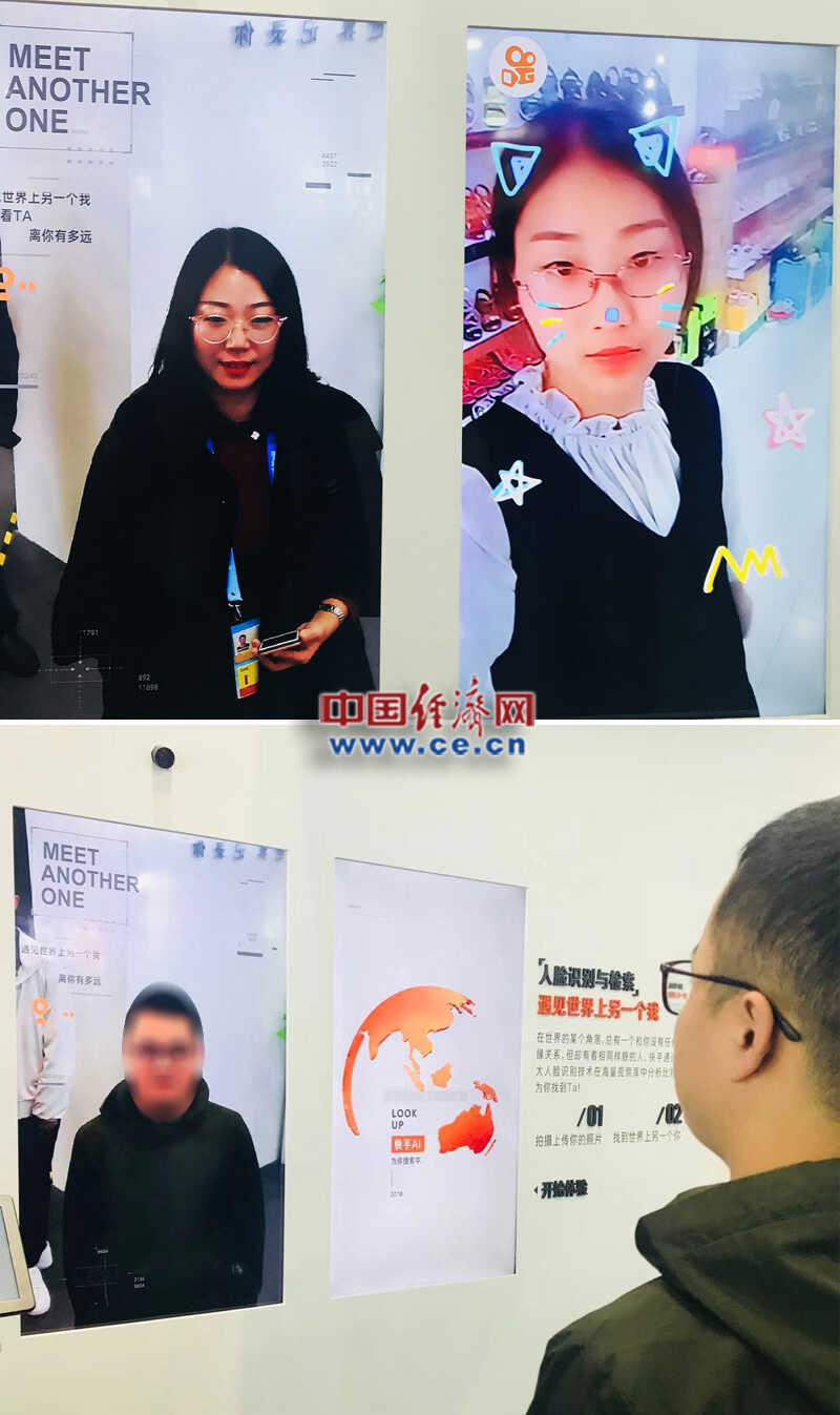 在茫茫人海之中找到与自己长相相似的人,就如大海捞针一般。在快手展台上,记者体验了一回找到另一个自己的感觉,站在摄像头前,倒计时3s后,左右两块屏幕上就分别出现了自己刚刚拍摄的照片和一个与自己长相非常相似的人。王婉莹/摄