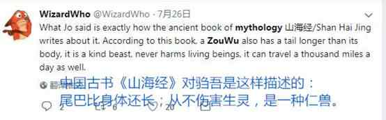 对驺吾的喜爱,自然激发起了外国网友们对驺吾身世的探究。有些网友为此做了功课,并在社交媒体上进行了科普。