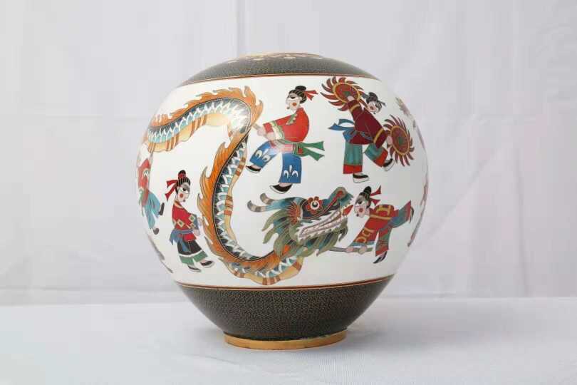 这些作品是米振雄从艺60年的艺术回顾,展品造型有瓶、鼎、盘、碟、罐几大类,题材既有严谨的古代青铜器纹饰遗风,也有时代感强烈、活泼喜庆的中国传统年画风格,用色揉合中西元素。