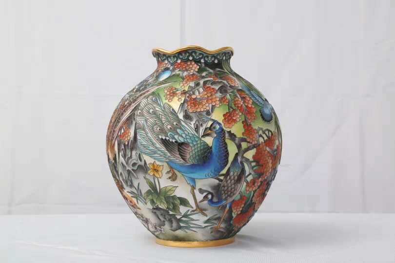 景泰蓝又称“铜胎掐丝珐琅”,元朝未年由阿拉伯传入中国。它以晶莹夺目的蓝色釉料作装饰因盛行于明代景泰年间而得名。1904年,景泰蓝宝鼎炉曾获得芝加哥世界博览会一等奖。景泰蓝的制作技艺十分精巧,其中引入了中国传统绘画,雕刻,镶嵌、冶金和瓷艺技术,堪称中国传统工艺美术的集大成者。