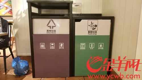随着《广州市生活垃圾分类管理条例》的出台和实施,更多的肯德基餐厅也在陆续悄然变身。记者走近餐厅,推门进去就看到“垃圾分一分,快乐多一分”的公益海报。在用餐区,垃圾箱已分为灰色的“其它垃圾”和绿色的“餐厨垃圾”,后厨垃圾桶的分类也同样明确细致。