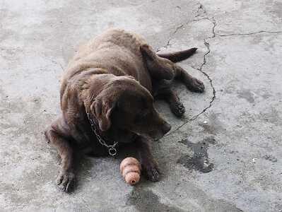 ■留验所照顾的一只老年拉布拉多犬。 新快报记者 肖韵蕙/摄