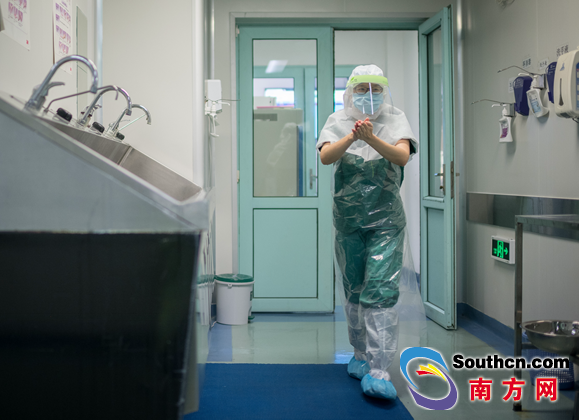 9时左右,医生一个接一个走进手术室。与往常不同的是,医护人员在穿上绿色的洗手衣后、穿上一次性手术衣前,还需要戴上一件类似于围裙的防水服,戴上头罩和面罩,穿上水鞋、套上鞋套,再在手上套三层手套。