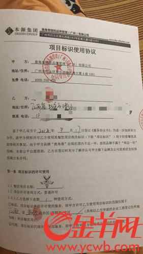 记者查看小雨与该公司签订的合同,发现该合同为《服务协议书》,内容没有提及加盟,而是“本合同指导培训服务包括经营管理、操作流程、物品采购、设备使用等方面的理论指导及技术实操培训”,并写明服务费用9.48万元(经申请优惠了5千元)于合同签订之当日一次性支付完毕,而小雨缴纳两万元的证明也只是一张定金收据。同时,双方还签订项目标识使用协议,允许小雨在2018年9月17日至2021年9月16日使用“鹿角巷”logo标识。“我一直和他们协商,因为服务还没启动,希望能把定金退给我,但对方都不愿意。”