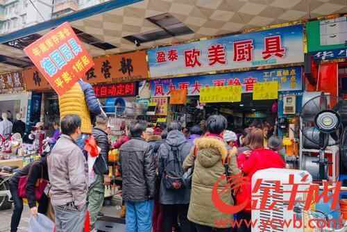 金羊网讯 记者李焕坤报道:“特价”“清货”“平卖”“超抵价”……13日上午11时,记者来到海珠区南泰百货批发中心南街,能并排行驶两辆车的街道此时挤满了来淘“笋”货的市民。原来,因地铁11号线江泰路站施工需要,中心南街靠江燕路一带的约30个商铺将在14日前搬迁,近日在做清仓大甩卖,有些不搬迁的商户担心客流受影响,同样加入了甩卖行列。