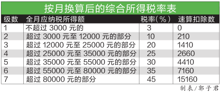 如按照《通知》所附月度税率表,王先生年终奖每月分摊2500元对应的税率和速算扣除数分别为3%和0,应纳个税为:30000×3%-0=900元。