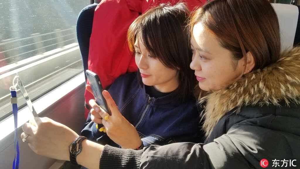 图为旅客在平泉北至承德南的高铁列车上拍照。