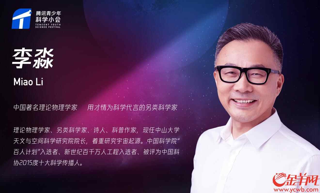 李淼拥有理论物理学家 /科学研究院院长 /有趣的另类科学家 /诗人 /科普作家等多重身份,他现任中山大学天文与空间科学研究院院长,着重研究宇宙起源,出版的科普书《〈三体〉中的物理学》、《给孩子讲时间简史》,把科幻宏大的太空拆析成无数条物理学原理,将科学知识进行趣味解读。