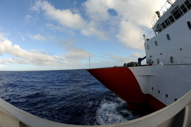 ◆“沈括”号停泊在马里亚纳海沟“挑战者深渊”海域。